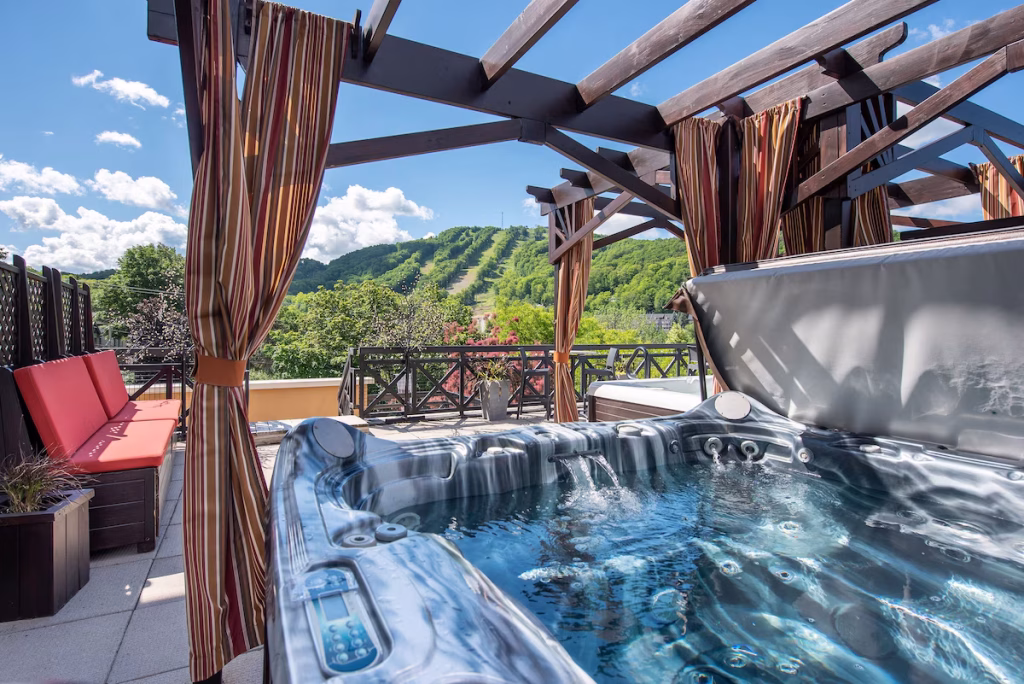 A top pick for thrill-seekers in Quebec, Hôtel Château-Bromont is a short drive from skydiving, climbing parks, and high-speed mountain biking trails, making it an extreme adventure destination.